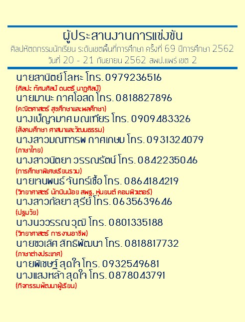 1. การเปลี่ยนตัวผู้เข้าแข่งขันในแต่ละกิจกรรม เมื่อได้รับการคัดเลือกเป็นตัวแทนของกลุ่มโรงเรียน ต้องมีเอกสาร DOC.5 และหนังสือแจ้งขอเปลี่ยนตัวผู้เข้าแข่งขันโดยผู้อำนวยการโรงเรียนลงนามอนุญาต ยื่นต่อคณะกรรมการตัดสิน ณ จุดแข่งขัน (วันรายงานตัว)